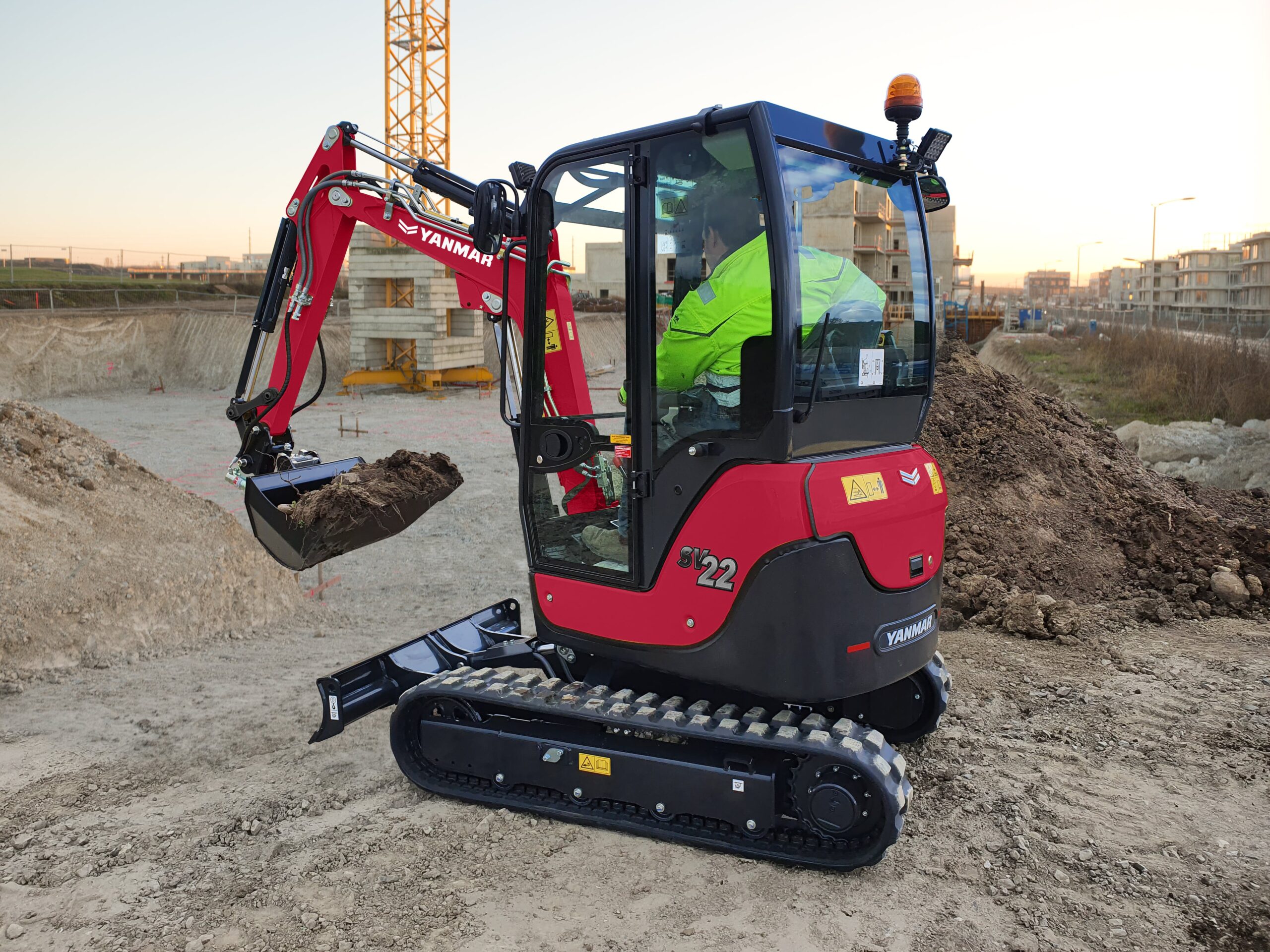 Model SV22 został zaprojektowany tak, aby spełniać wszystkie wymagania, nawet podczas wykonywania najbardziej skomplikowanych zadań. Jest to kompaktowa i lekka maszyna, którą w łatwy sposób można transportować na przyczepie. Jej stabilność i moc pozwalają na skuteczne wykonywanie pracy bez względu na występujące utrudnienia na danym terenie. SV22 jest przeznaczona do szerokiej gamy zastosowań. Doskonale sprawdzi się na terenach miejskich, w ogrodzie oraz przy projektowaniu krajobrazu. Połączenie szerokiej przeciwwagi, asymetrycznych gąsienic (opatentowany przez YANMAR system VICTAS) oraz doskonały rozkład masy sprawiają, że SV22 jest maszyną niebywale stabilną, co wpływa na jej zdolności udźwigu. Zastosowany system VICTAS polega na zwiększeniu powierzchni tarcia poprzez zwiększenie pojedynczych ogniw oraz użyciu asymetrycznych gąsienic. Zapewnia to zwiększenie stabilności bocznej i zdolności unoszenia, redukuje ścieralność gąsienic i sprawia, że jazda jest cicha oraz pozbawiona wibracji.